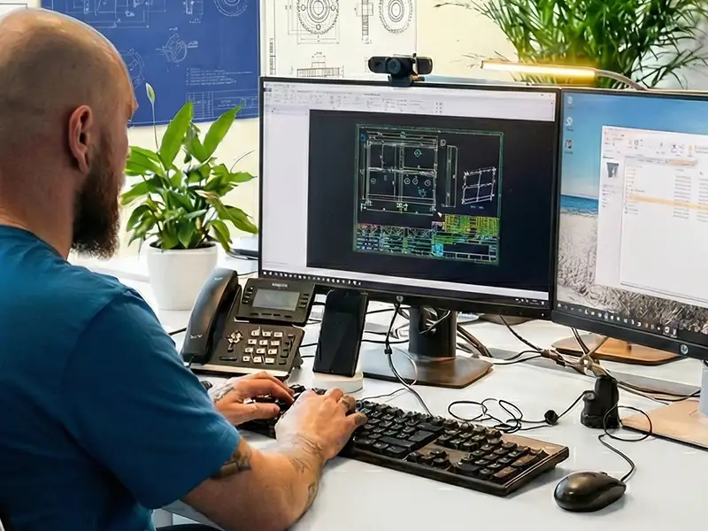 Wir planen individuelle Förder- und Prozessanlagen mit modernster 3D-Software und branchenspezifischem Know-how. Von der Vor-Ort-Analyse bis zur fertigen CAD-Konstruktion erhalten Sie durchdachte Lösungen, die funktionieren.