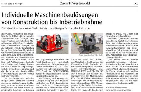 Innovation, Produktion und Funktion. Dafür steht das 35 Mann starke Unternehmen aus Ötzingen. Seit über 30 Jahren entwickelt die Maschinenbau Wüst GmbH individuelle Maschinenbau Lösungen für die Industrie – von der Konstruktion bis zur Inbetriebnahme. Dabei steht das Unternehmen seinen Kunden in allen Bereichen der Schüttguttechnik, Keramik- und Feuerfestindustrie, besonders aber in der Recycling- und Aufbereitungstechnik als zuverlässiger und flexibler Partner zur Seite. Auch in der Verpackungs- und der Steine-Erden-Industrie sind die Produkte des Westerwälder Maschinenbauers äußerst beliebt und weit verbreitet.