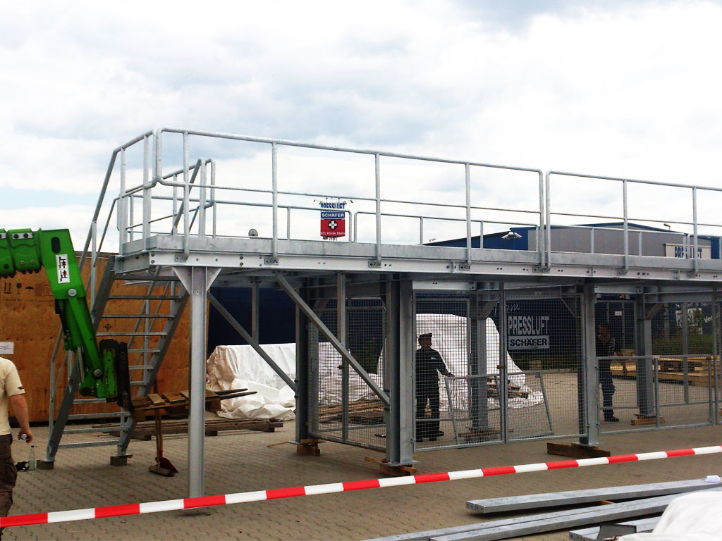 Wir decken nahezu alle Bereiche der Stahlkonstruktion ab. Das beinhaltet für den industriellen Bereich alle für die Förder- und Recyclinganlagen notwendigen Komponenten und Hilfskonstruktionen bis hin zu kompletten Hallen, die wir in einem kompetenten Partnerverbund erstellen. Hierzu zählen z.B. Arbeitsbühnen, Rampen, Treppen, Treppengeländer und allgemeine Absturzsicherungen. Diese Stahlkonstruktionen können separat oder als Zusatz für unsere Anlagen im Stahl- und Metallbau gefertigt werden.